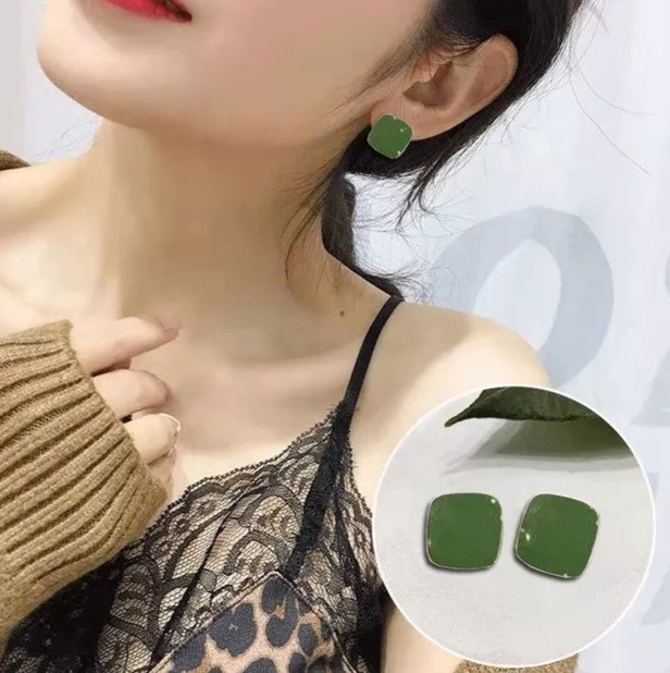 - 【新品未使用、匿名配送】グリーン スクエア ピアス 大人 シンプル 韓国