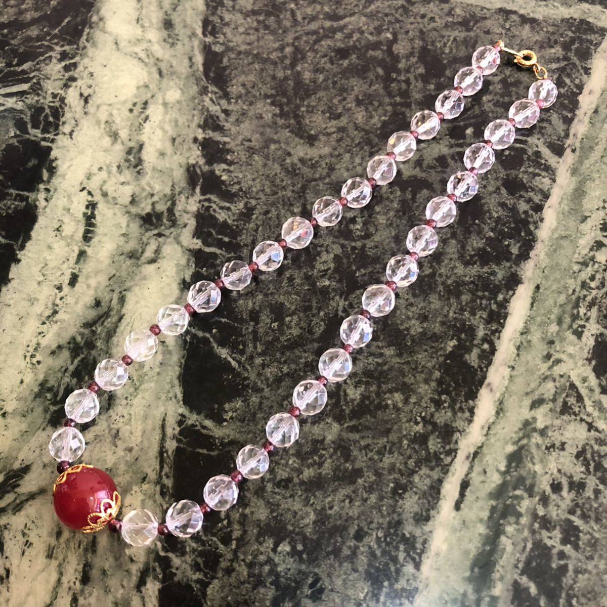 - 【新品】天然石ネックレス★ボルドーアゲート 水晶 クリスタル ガーネット カラーストーン クリアカラー 赤 メノウ 瑪瑙 クリスタル