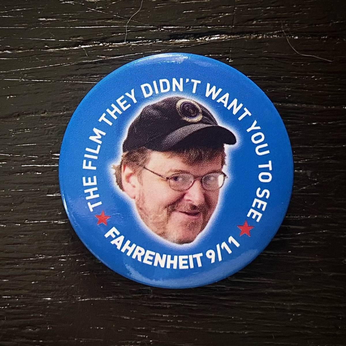 - 華氏911 缶バッジ バッジ マイケル・ムーア 映画 ムービー ビンテージ プロモ ノベルティー
