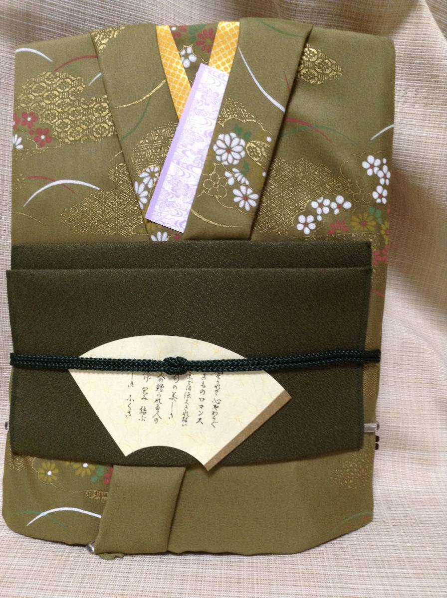 着物風ふろしき2枚×金封ふくさ セット 日本製 風呂敷 緑(グリーン)