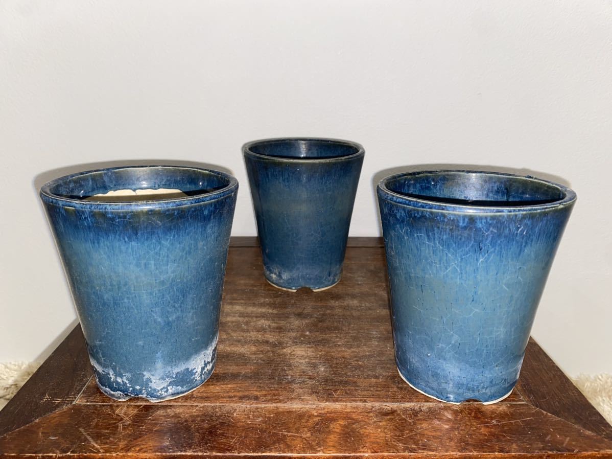 - 植木鉢 蘭鉢 3点セット 青 均窯 水色 釉 ミニ盆栽 雑木 多肉植物 山野草 草花 花 園芸 ガーデニング 鉢 盆栽鉢