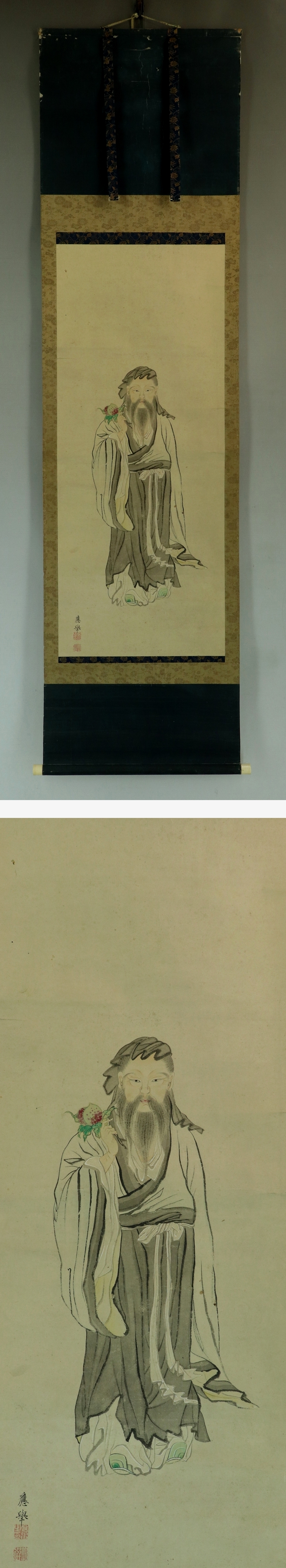 - 【真作】円山応挙【桃仙人】◆紙本◆合箱◆掛軸 u12019c