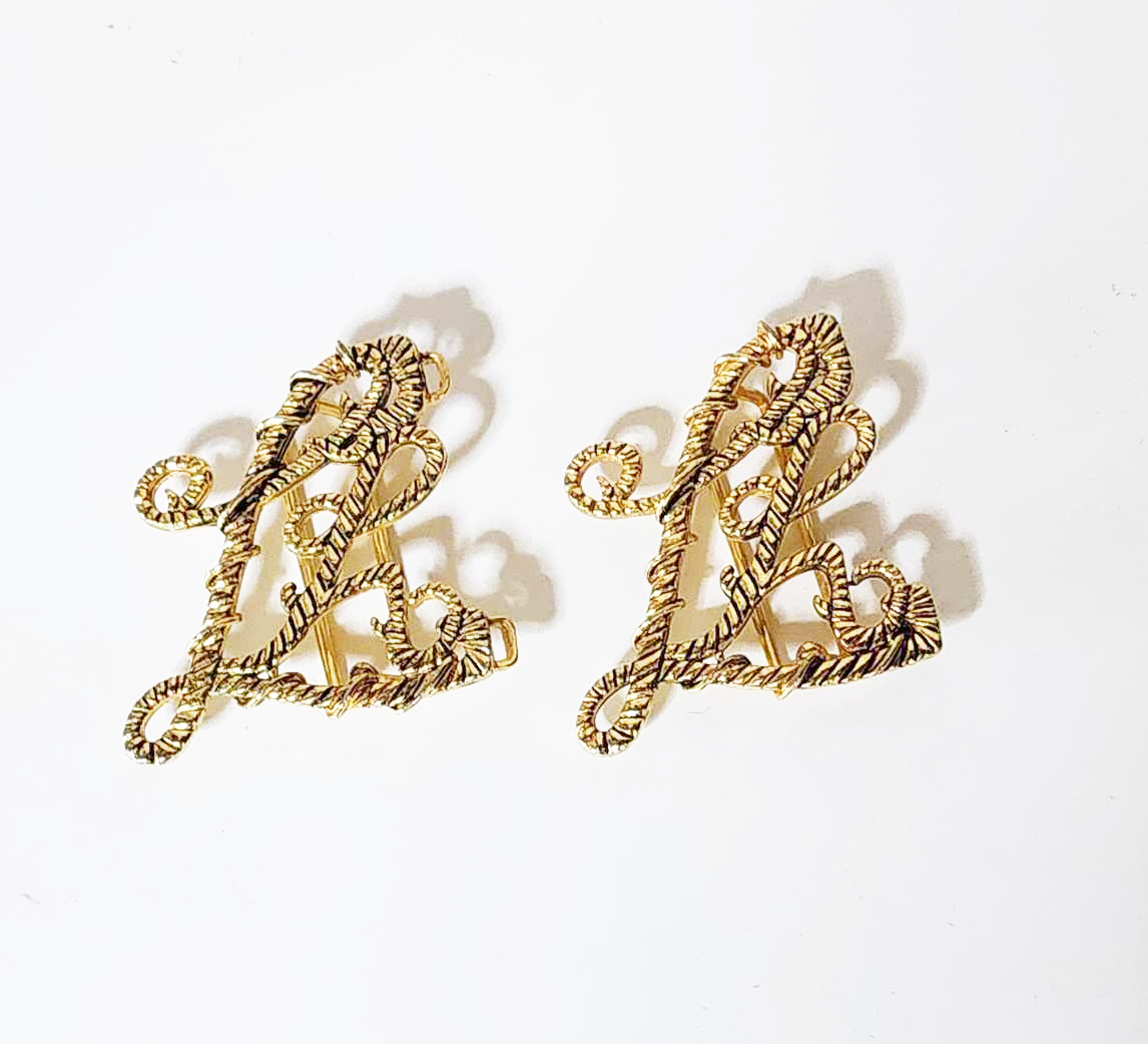 - 昭和レトロ イニシャルLのベルトバックル 金色2個