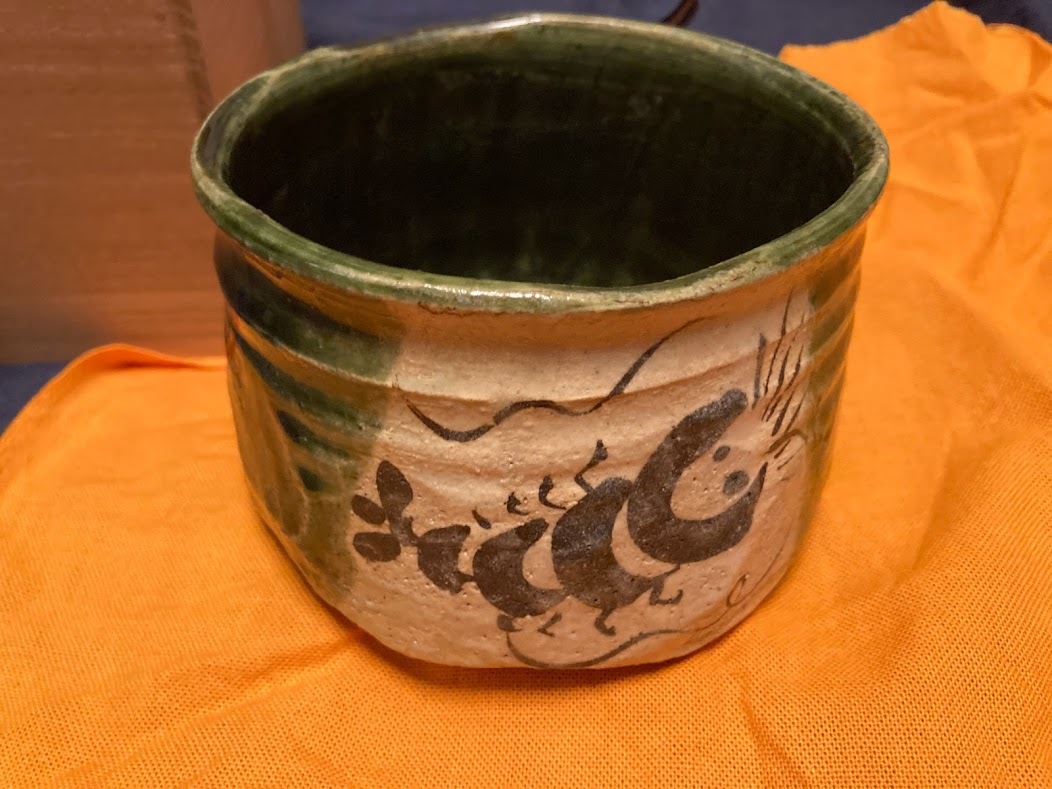 - 本物保証 北大路魯山人 海老文 織部 茶碗 黒田陶々庵極め箱 本物返品OK 113