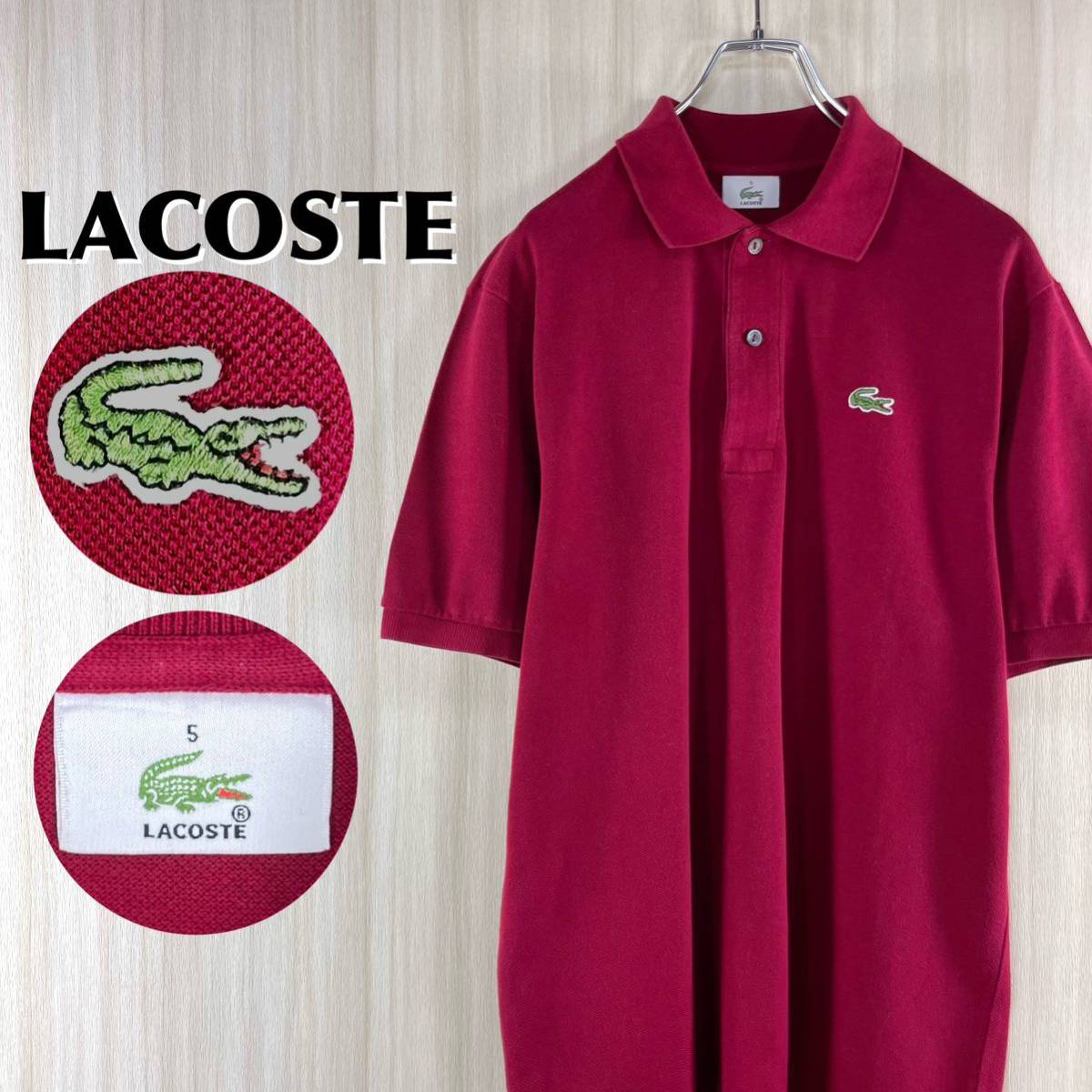 - 【王道アイテム】【希少カラー】【からくれない】ラコステ ワニ ちょうちん袖 鹿の子 半袖ポロシャツ サイズ5 真紅 韓紅 濃い紅色 古着