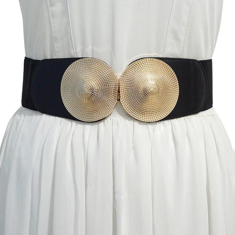 - 【ブラック】ゴールドバックル 幅広ゴムベルトレディース韓国大人気