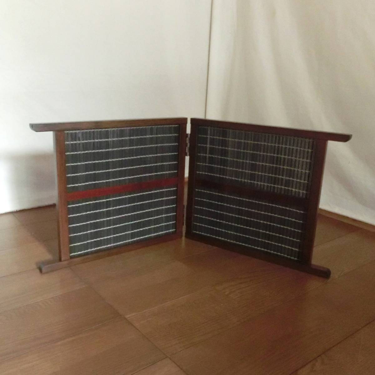 - 木製 衝立 ついたて 折りたたみ式 2連 屏風 和風 間仕切り ブラック木簾 盆栽 花 園芸の引き立て背景に