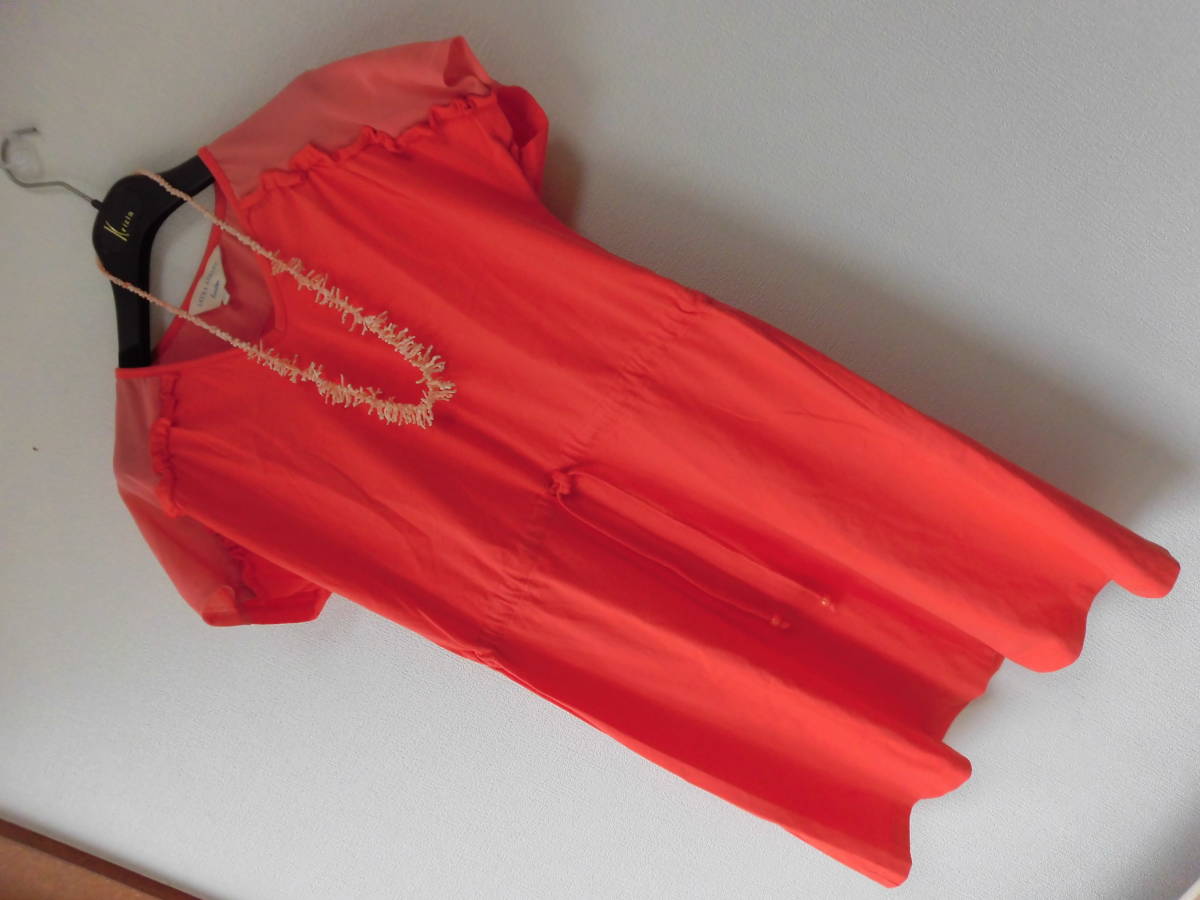 - ●美品LAURA ASHLEY ローラアシュレイ/異素材切り替え/フレンチワンピース/オレンジ,フリル飾/サイズ2/ L~LX相当
