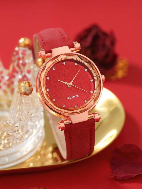 - レディース アクセサリー 腕時計セット ラインストーン装飾クォーツ時計 1 個 & ジュエリー 4 個セット