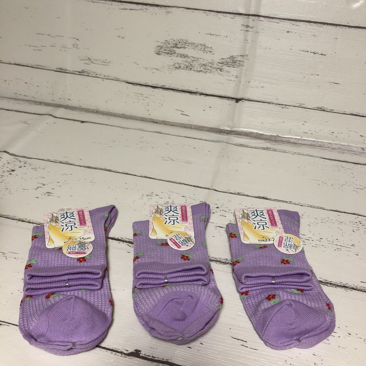 - K54 新品 爽涼 ソックス 3点 メッシュ パープル 靴下 綿混 レディース フットケア