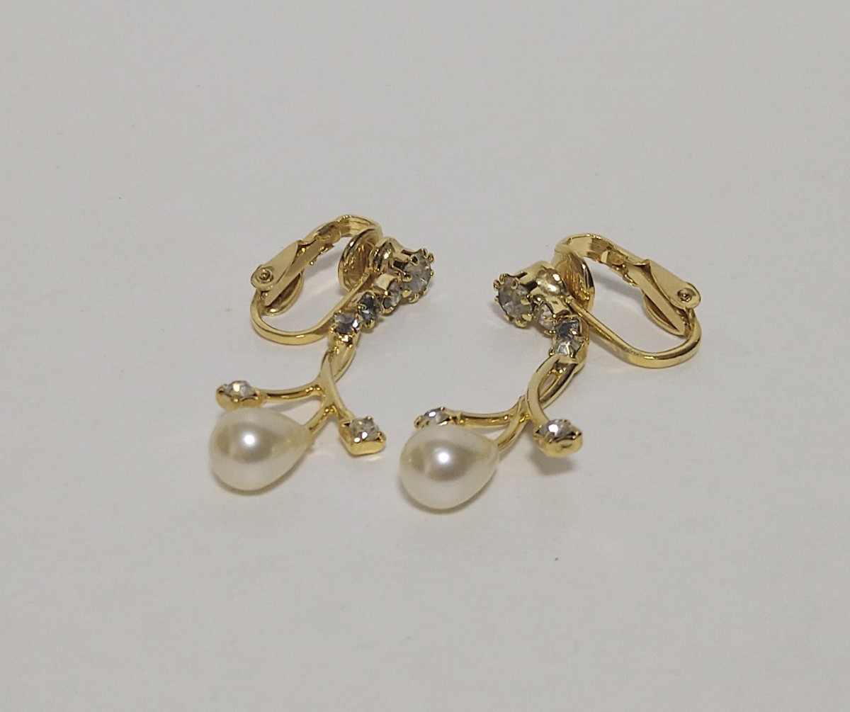 - ф 真珠? パール? ラインストーン イヤリング ф