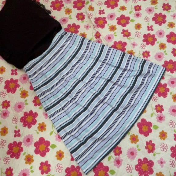 - 水色系 ボーダー かわいい スカート M スカート 丈62センチ