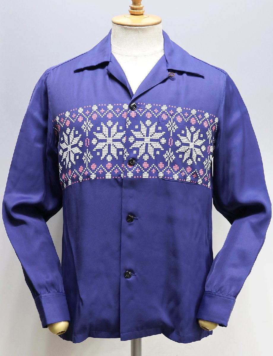 - The Groovin High (グルービンハイ) 1940s Town Craft Style Rayon Shirts “Snow Pattern” / レーヨンシャツ 未使用品 ネイビー size S