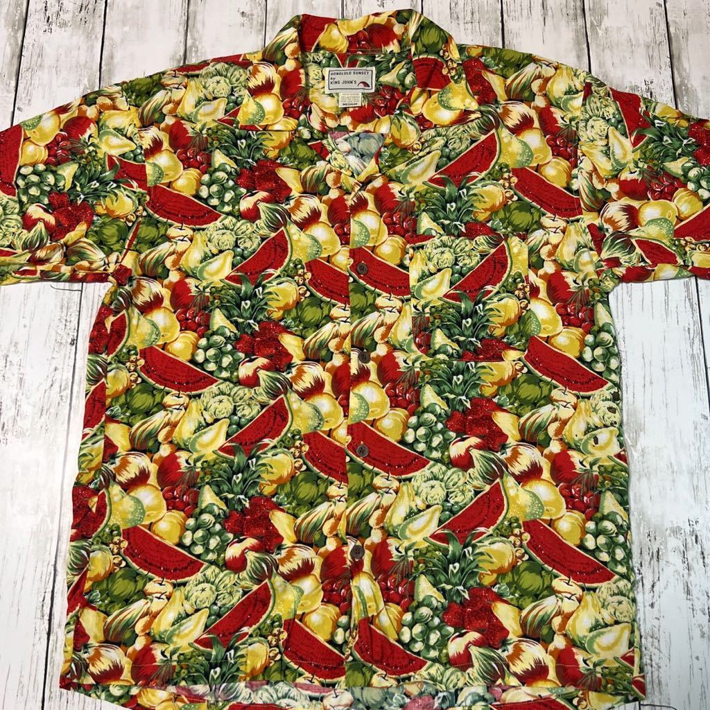 - HONOLULU SUNSET by KING JOHN'S 開襟 総柄 柄シャツ フルーツ レトロ アート ビンテージ 半袖シャツ アロハシャツ RAYON100%