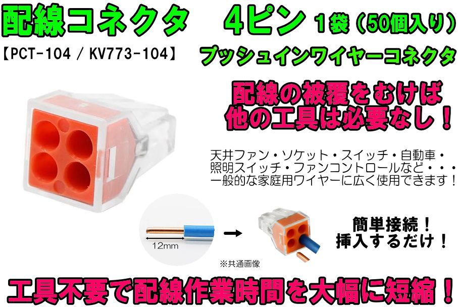 - 配線コネクタ 4ピン PCT-104(KV773-104) ワンタッチコネクタ 導体端子台レバー 配線 電気 並列配線 プラグイン 再利用 接続端子 高速 ③