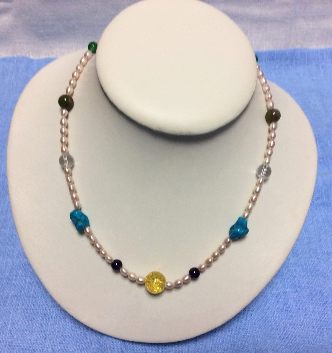 - 淡水真珠 トルコ石 トパーズ オリジナルデザインネックレス 真珠ネックレス 管理No.126