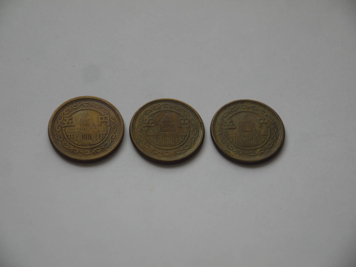 - 昭和24年 五円 穴なし 黄銅貨 3枚セット