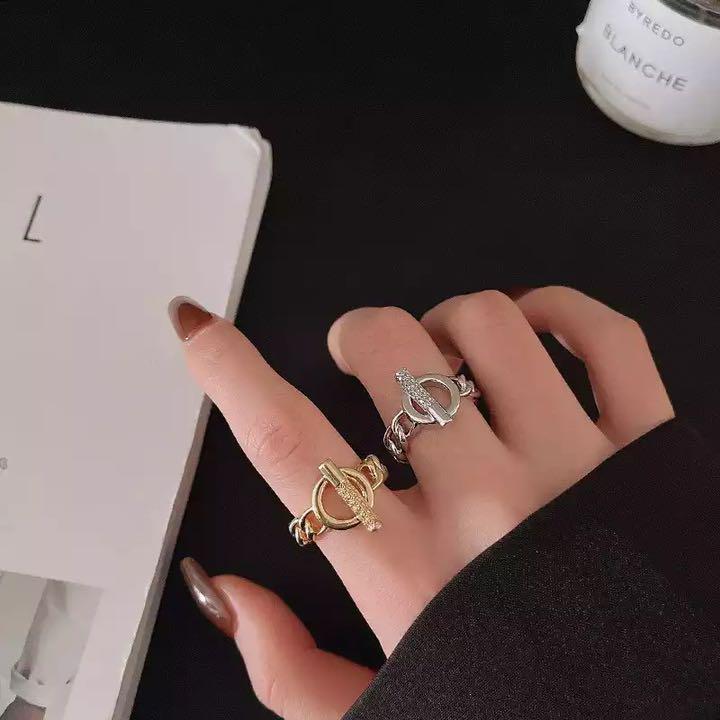 - サークルリング 指輪 レディース ゴールド シルバー チェーン ジルコニア 2カラー シンプル シルバー925 フリーサイズ 新品