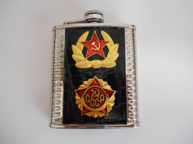 - ロシア ソ連 スキットル ヒップフラスク 7oz CCCP 鎌と槌 ステンレス 黒 1159