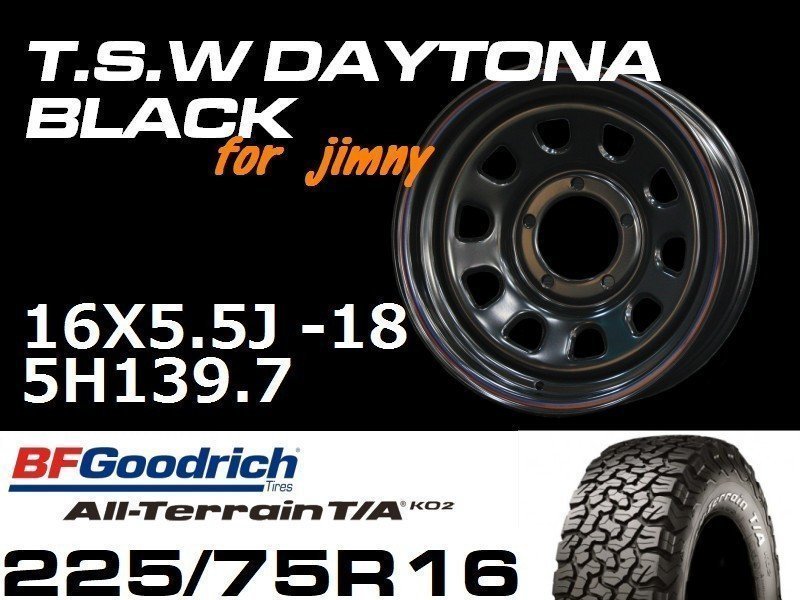 - 新型 ジムニー ホイール! TSW デイトナブラック 16X5.5J-18 BF Goodrich All-Terrain T/A KO2 225/75R16 タイヤセット JB64 JB23などに!