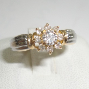 - サイズ8号 pt900/k18ダイヤ9石入りファションリング 送料無料 used 質屋出品