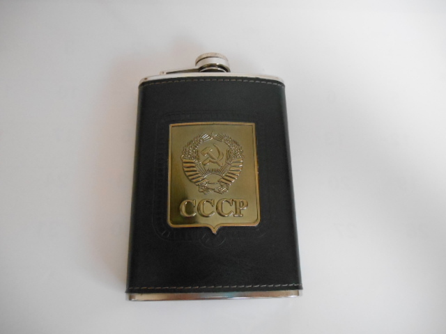 - ロシア ソ連 スキットル ヒップフラスク 9oz CCCP 国章 鎌と槌 ステンレス 黒 1156