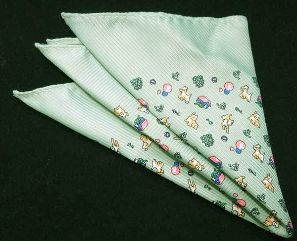 > ポケットチーフ 入園入学 スーツ 犬柄 動物柄 キッズ 子供服 新品即決!グリーン