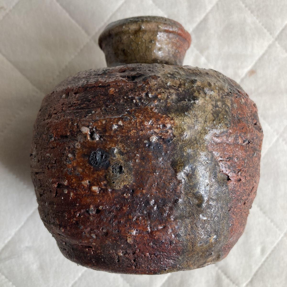 - 桃山.江戸時代.古い伊賀焼.二重口.蹲る壷.小壷 .掛け花.窯印.作家刻印有り.水漏れ無し.完品.重さ.約1kg.底.横幅.約8.8cm.胴.横幅.約11.8cm.