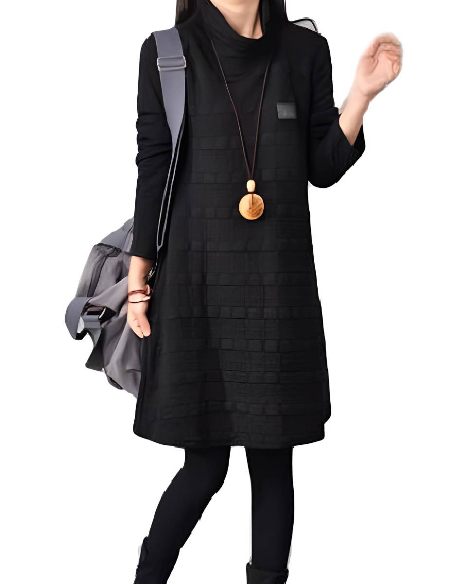 - 12.チュニック もこもこ ワンピ ハイネック あったか ひざ丈 ブラック L