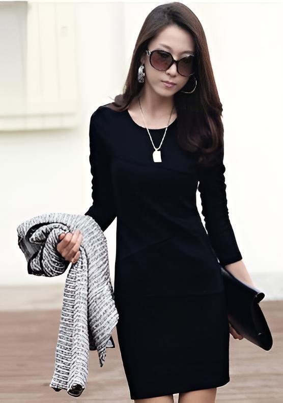 - 34-5.タイト ワンピース ミニ 上品 大人 無地 ブラック L