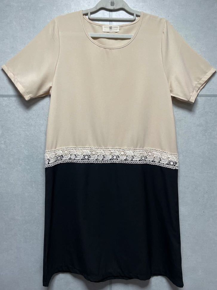 - [美品]rps 半袖 ドッキングワンピース パーティードレス 黒 ベージュ 切り替え