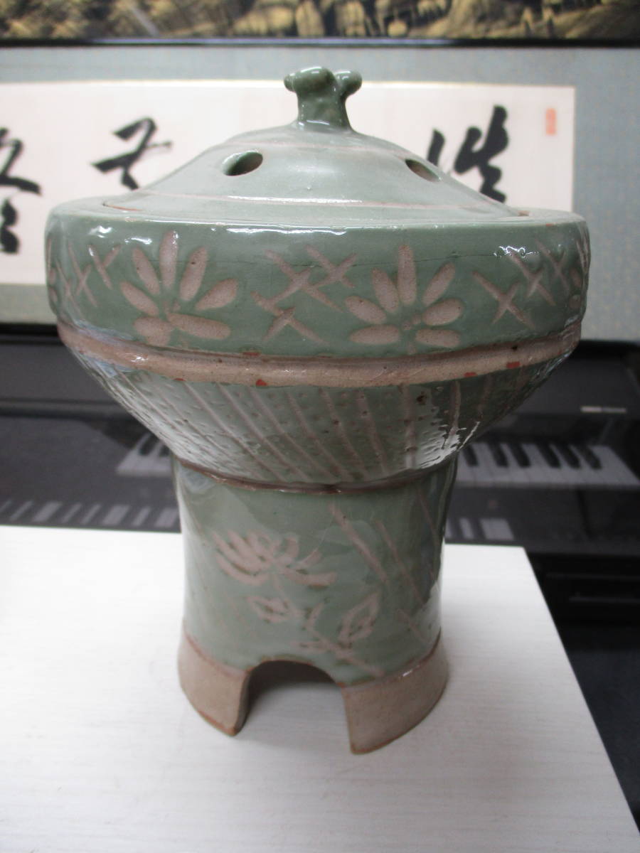 > ★香炉? 高さ19.5㎝ 横14㎝ 貫入入り ※フタに少々カケあり tm2309-17-11★