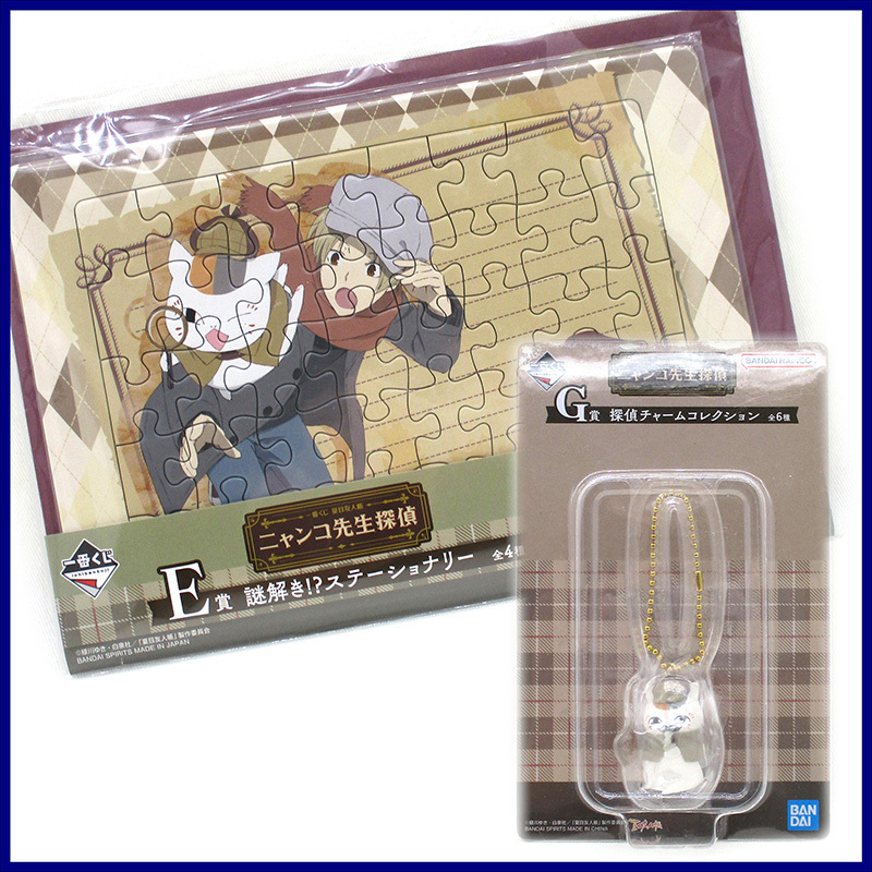 - 一番くじ 夏目友人帳 ニャンコ先生探偵 E賞 謎解き!?ステーショナリー パズルメッセージカード ◆ G賞 探偵チャームコレクション / 2点
