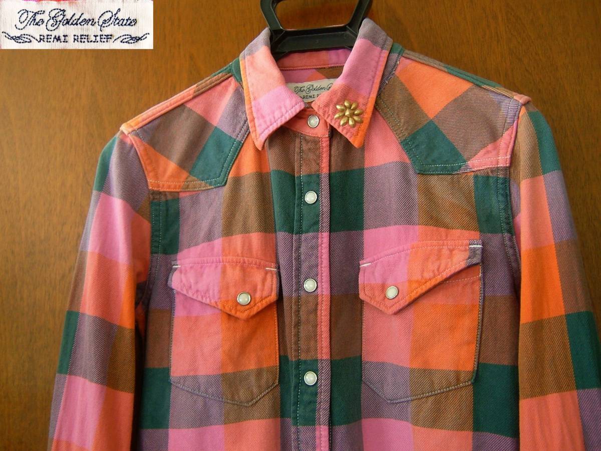 - レミレリーフ REMI RELIEF スタッズ付き ネルシャツ ウエスタンシャツ 長袖シャツ WOMEN`S