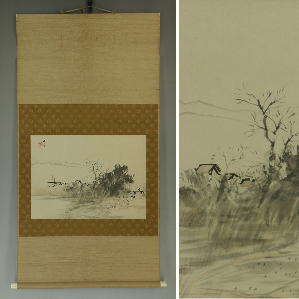 - 【巧芸】川合玉堂【秋景山水】◆紙本◆掛軸 t01026
