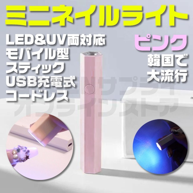 - ハンディ LED & UV 充電式 ピンク ネイルライト コードレス