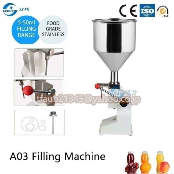 > 【ケーリーフショップ】卓上型 クリーム/液体充填機 ハンドフィラー 空気圧式 プロ用 業務用 ステンレス製 小分け 食品 ジャム 瓶詰め 手動