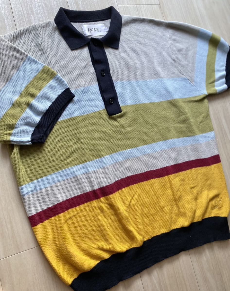 - RAIZO 鹿子マルチボーダーニットポロシャツ■サイズ2(L)美品 定価10780円■ライゾー半袖ビッグシルエット 綿100% ドメスティックブランド