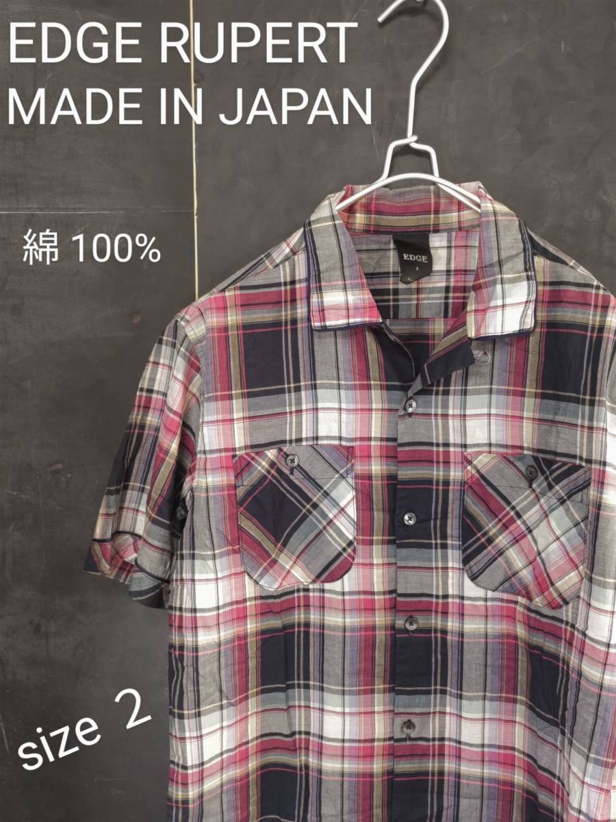- ★送料無料★ EDGE RUPERT チェックシャツ エッジ ルパート シャツ オープンカラー size 2( Medium 相当)