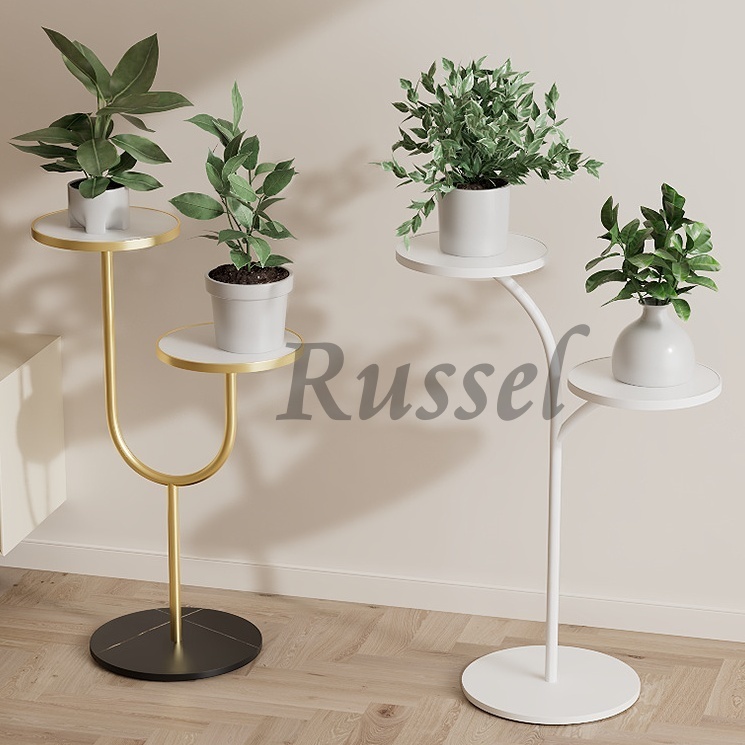 - 小物や植木鉢などを飾る フラワースタンド シェルフ モダン 北欧 棚 インテリア おしゃれ ラグジュアリー 玄関 リビング 庭 白 黒 金