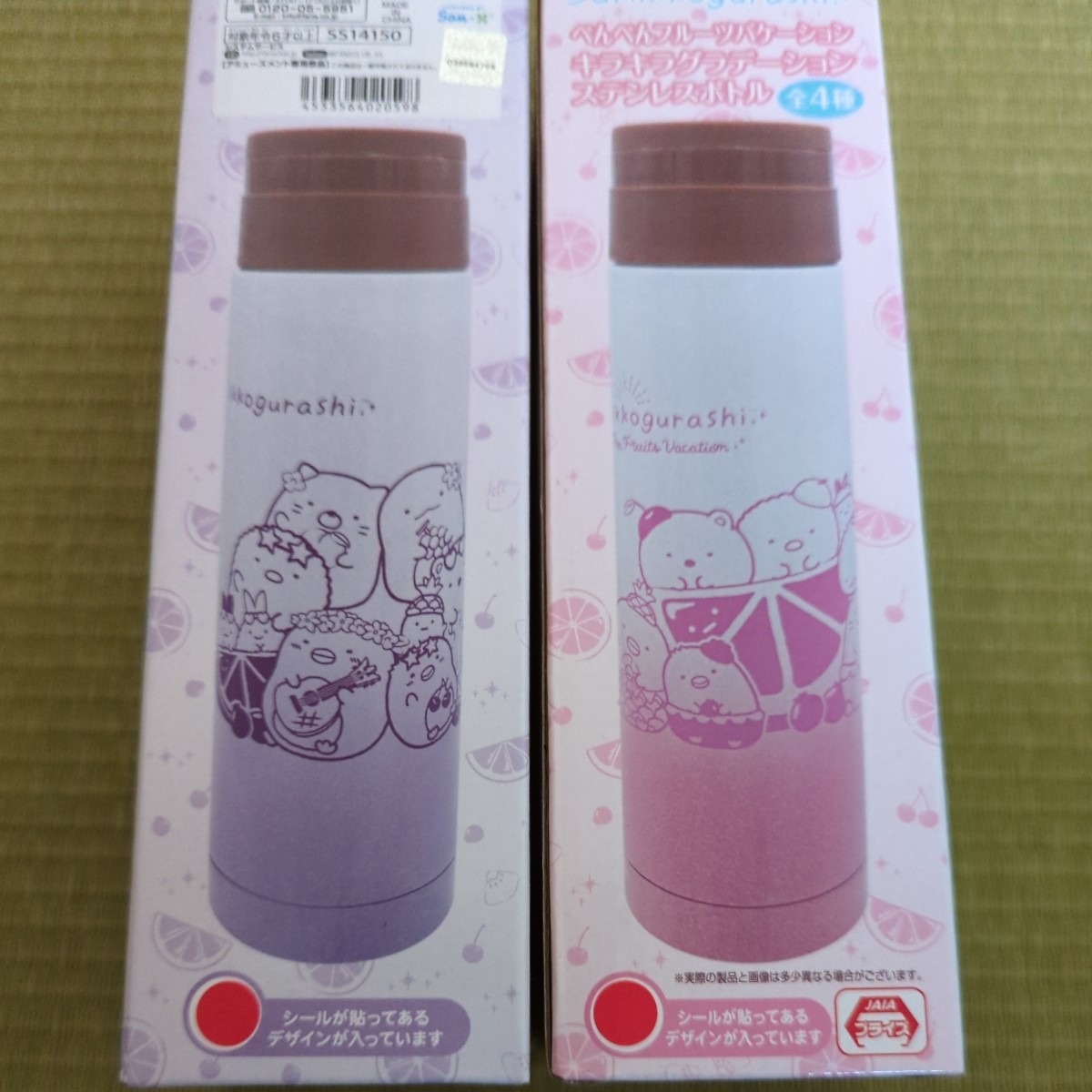 - すみっコぐらし★ぺんぺんフルーツバケーション キラキラグラデーション ステンレスボトル 水筒★パープル&ピンク