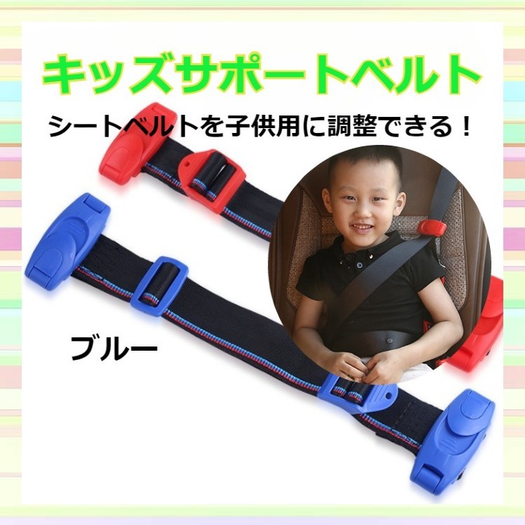 - 子供用補助ベルト シートベルト キッズベルト 簡単装着 ブルー