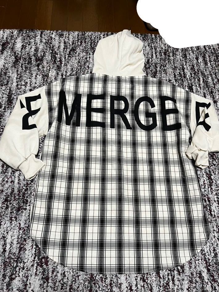 > 美品!Galyge ガレージ チェック切り替え バックロゴ オーバーサイズ Lサイズ パーカー しまむら