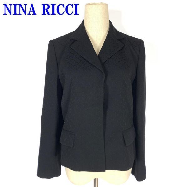 - NINA RICCIニナリッチ総柄テーラードジャケットブラックカジュアル ポケット無 光沢感あり ビジネスオフィス セレモニー イベント9AR C7434