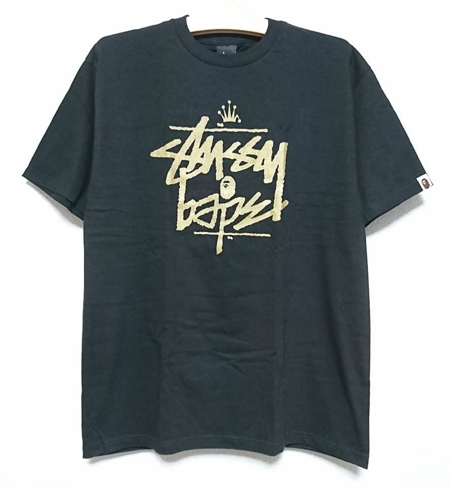 > 超爆レア希少!新品タグ付き!STUSSY ステューシー 2010年 30周年 アベイシングエイプ Wネーム/コラボレーション限定Tシャツ M ブラック