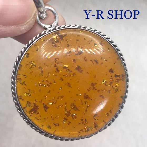 - ★琥珀風カラーストーン のアンティーク調ペンダントトップ ★レディースネックレスシルバー925刻印エスニックインド新品Y-RSHOP