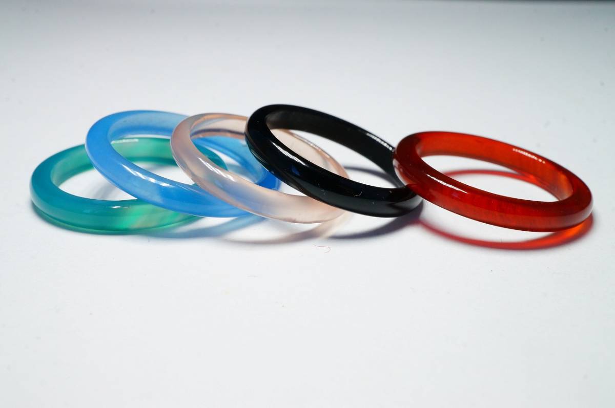 - 希少!原石を加工彫刻!極上アゲート瑪瑙メノウ、オニキス、ローズクォーツ彫刻研磨上質原石使用くりぬきリング【10.5号】18.5ct /5本セット