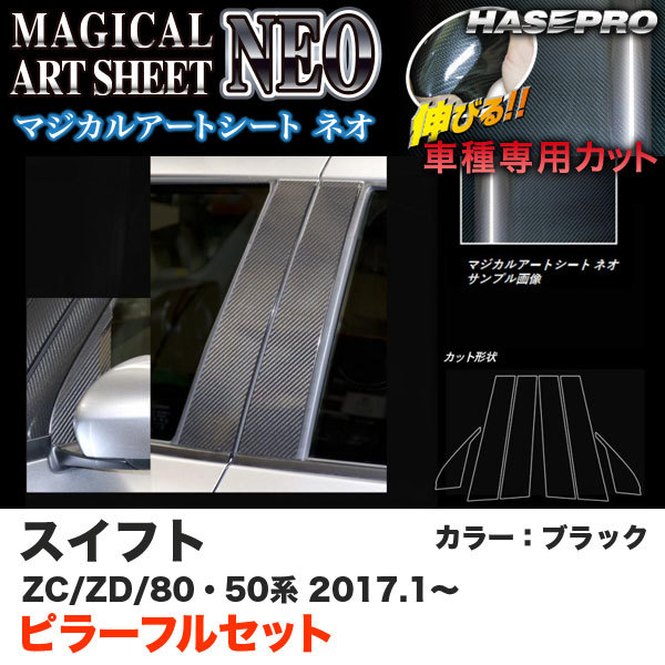- ハセプロ MSN-PSZ19F スイフト ZC50/80系 ZD50/80系 H29.1~ マジカルアートシートNEO ピラーフルセット ブラック カーボン調シート