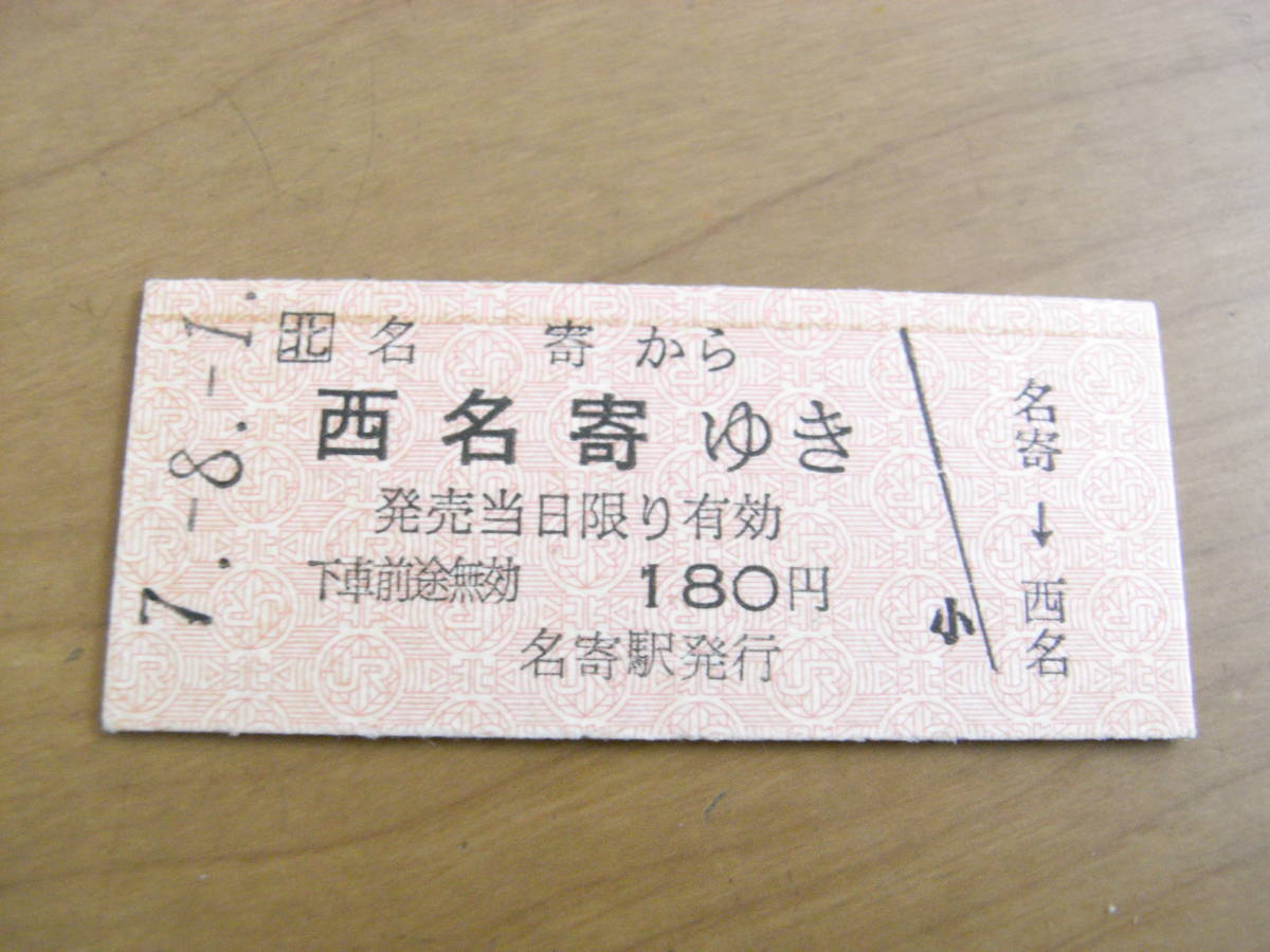 - 宗谷本線 名寄から西名寄ゆき 180円 平成7年8月1日 名寄駅発行 深名線