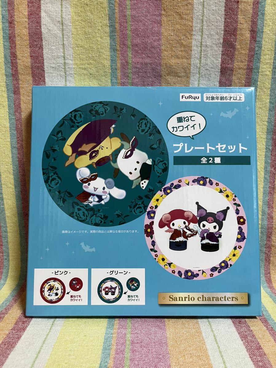 > サンリオ ナムコdeハロウィン2023 デビルズ マスカレード プレートセット グリーン クロミ マイメロディ シナモロール ポムポム ポチャッコ